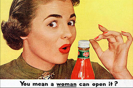 Bu ketçap reklamı, cinsiyetçilik dolu bir yaklaşımla, kadınların fiziksel güçten yoksun olduğunu ima ediyor. “Kolay açılır” tasarımı öne çıkararak 1950’lerin cinsiyetçi pazarlama anlayışını ve toplumsal kalıplarını gözler önüne seriyor.