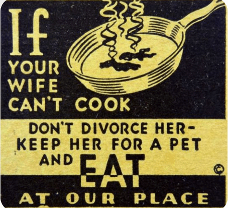 Bir restoranın bu “mizahi” reklamı, kadınların yemek yapma becerisini alaya alarak, kocalara eşlerini “evcil hayvan” gibi tutup dışarıda yemek yemelerini öneriyor.